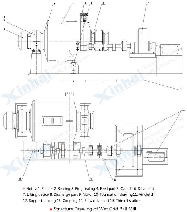 [Introduction]: A traditional ball mill with discharging grid [Capacity]: 900mm~4500mm [Improvement]: The jack-up device adopts the hydraulic jack-up device independently developed by Xinhai. When the ball mill is in maintenance, only handling the hydraulic station can make the hydraulic jack rise and fall. Compared with the ordinary jack-up device, Xinhai jack-up device is simple, convenient and easy to operate with lower maintenance costs.